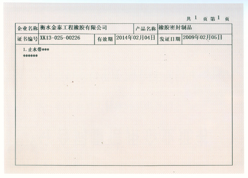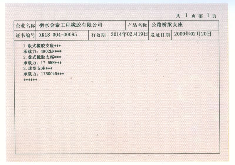 金泰工程橡膠產(chǎn)品列表